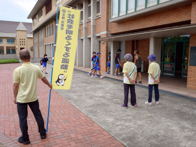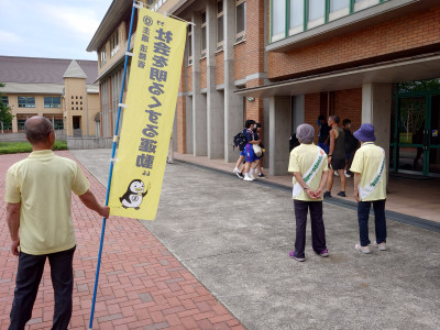 2025年7月1日 20時01分西会津町保護協議会の方々による「社会を明るくする運動」の一環であるあいさつ運動が西会津中学校の昇降口前でありました。