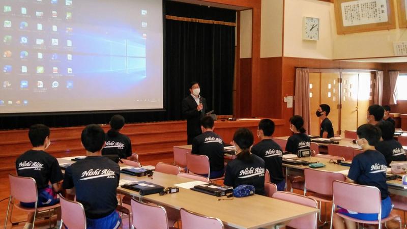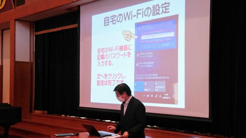 コロナ対応もありますが、何より新しい学びのスタイル(個別最適化)を創っていく目的で、本日中学校にタブレット型PCが入りました。本日は、3年生対象に、教育長さんが直々に説明をしてくださいました。
