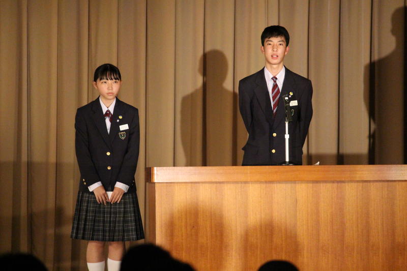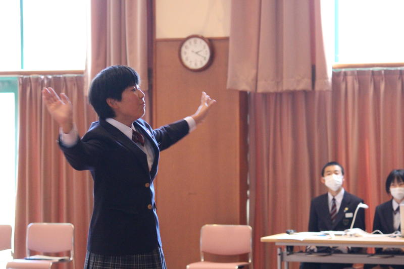 新型コロナウイルス感染症感染防止の観点から、合唱コンクールは歌う生徒と聞く生徒の距離を十分にとり、合唱隊形もできるだけ間隔を空けるように配慮しました。そのため、残念ながら保護者の皆様には直接お聞きいただくことはできませんでしたが、第2日の学年発表の中で録画したものを見ていただきます。また、ケーブルテレビでも後日放映予定ですので、ぜひご覧いただきたいと思います。