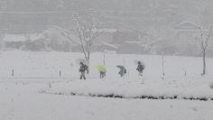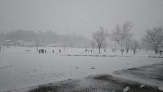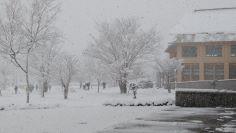 昨日から雪が降っていますが、今朝は一面雪景色となり、児童生徒は冷えた空気に白い息を吐きながらの登校です。