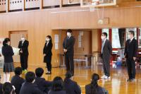 まず、着任式が行われました。校長先生をはじめ、5名の先生方をお迎えしました。