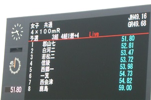2016年7月7日 09時11分福島県中体連陸上大会が、7/6(水)・7(木)福島市のとうほう・みんなのスタジアム(あづま陸上競技場)で開催されています。雨降りで気温も上がらず、あまり良いコンディションではありませんが、本校からは、男子四種競技、男子棒高跳び、3年女子100m、女子4×100mリレー、男子110mハードルに出場し、熱い戦いを繰り広げています。