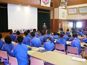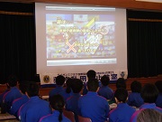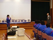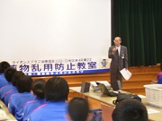 はじめに、DVDを見て薬物の恐ろしさ等について学びました。その後、講師のヒロセ様による講話でさらに理解を深め、最後は「薬物はダメ!ゼッタイ」とみんなで声をそろえて誓い合いました。