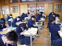 今朝各学級をまわってみると、どの学級どの生徒も、予想問題のプリントを解いたりテスト勉強に一生懸命取り組んでいました。テスト直前まで粘り強く頑張って、実力を100%発揮してほしいと思います。