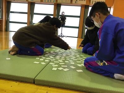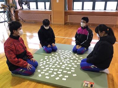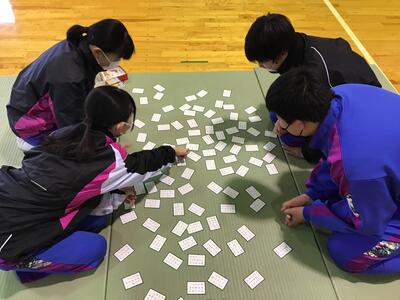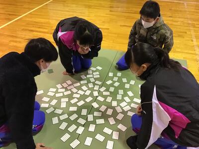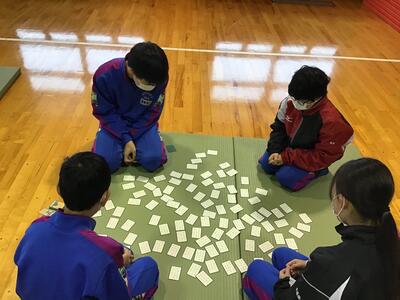 2023年2月15日 19時23分今日は1年生の国語の授業で百人一首を行いました。4~5人に分かれ、1年生で誰が一番カードを取ることができたのかを競いました。子どもたちは慣れない百人一首に悪戦苦闘していましたが楽しそうに取り組むことができていました。