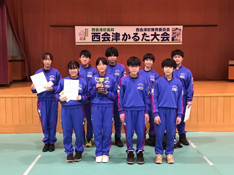 2023年2月20日 19時16分2月18日(土)野沢体育館で行われた「第5回町長杯西会津かるた大会」に、西会津中学校から文化部と野球部の生徒計9名が参加しました。中学生は一般の部への参加となりました。「西会津かるた」は西会津オリジナルのかるたで町の歴史や文化を学ぶことができます。生徒たちは初めてのかるた大会を楽しむことができました。