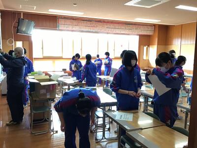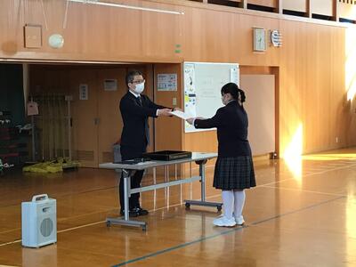 各学年の代表生徒が校長先生から修了証書を受け取りました。