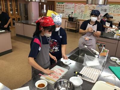 2023年9月14日 11時59分今日は1年生の家庭科の授業で豚肉のしょうが焼きとブロッコリーのおかか和えを作りました。生徒たちは各班ごとに分かれ協力しながら取り組んでいました。自分たちで作った料理はとてもおいしかったようです。