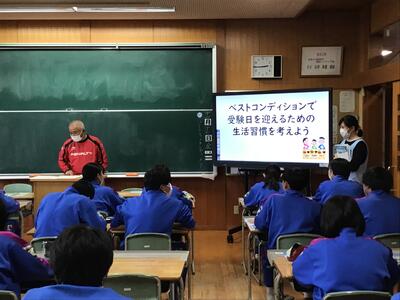 2023年11月17日 15時33分3年生の学級活動の時間で受験期の生活習慣について考えました。「ベストコンディションで受験日を迎えるための生活習慣を考えよう」をテーマに、生徒たちは睡眠や食事などについて考えました。受験で自分の力を出し切れるように生活習慣を見直してほしいです。