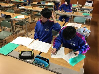 2024年1月19日 15時29分3年生は受験にむけて面接練習をしたり、テスト勉強をしたり受験に向けて準備を行っています。まだまだ寒い日が続きますので、体調管理に気をつけて準備を進めてほしいです。